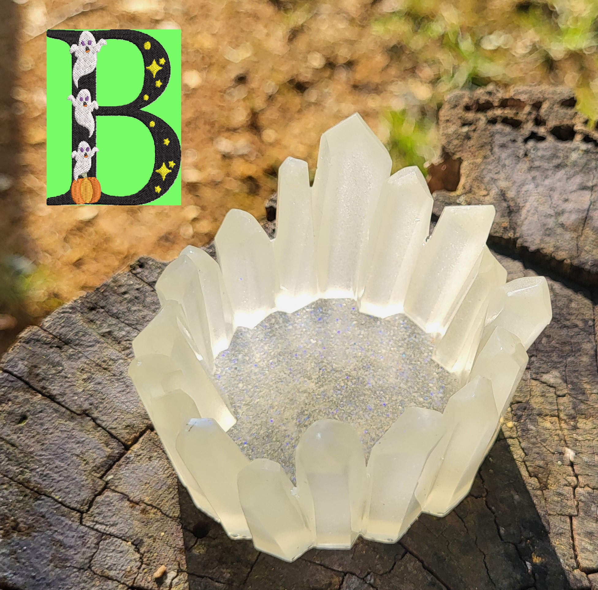 Enhance your witchy and spooky ambiance with a stunning crystal candle holder. Made with high-quality resin and beautifully designed, this unique piece will add an enchanting touch to your decor. Browse our collection and find the perfect crystal candle holder for your mystical space.This candle holder glows in the dark when charged in the light or blacklight. Tea light candles are included in purchase.