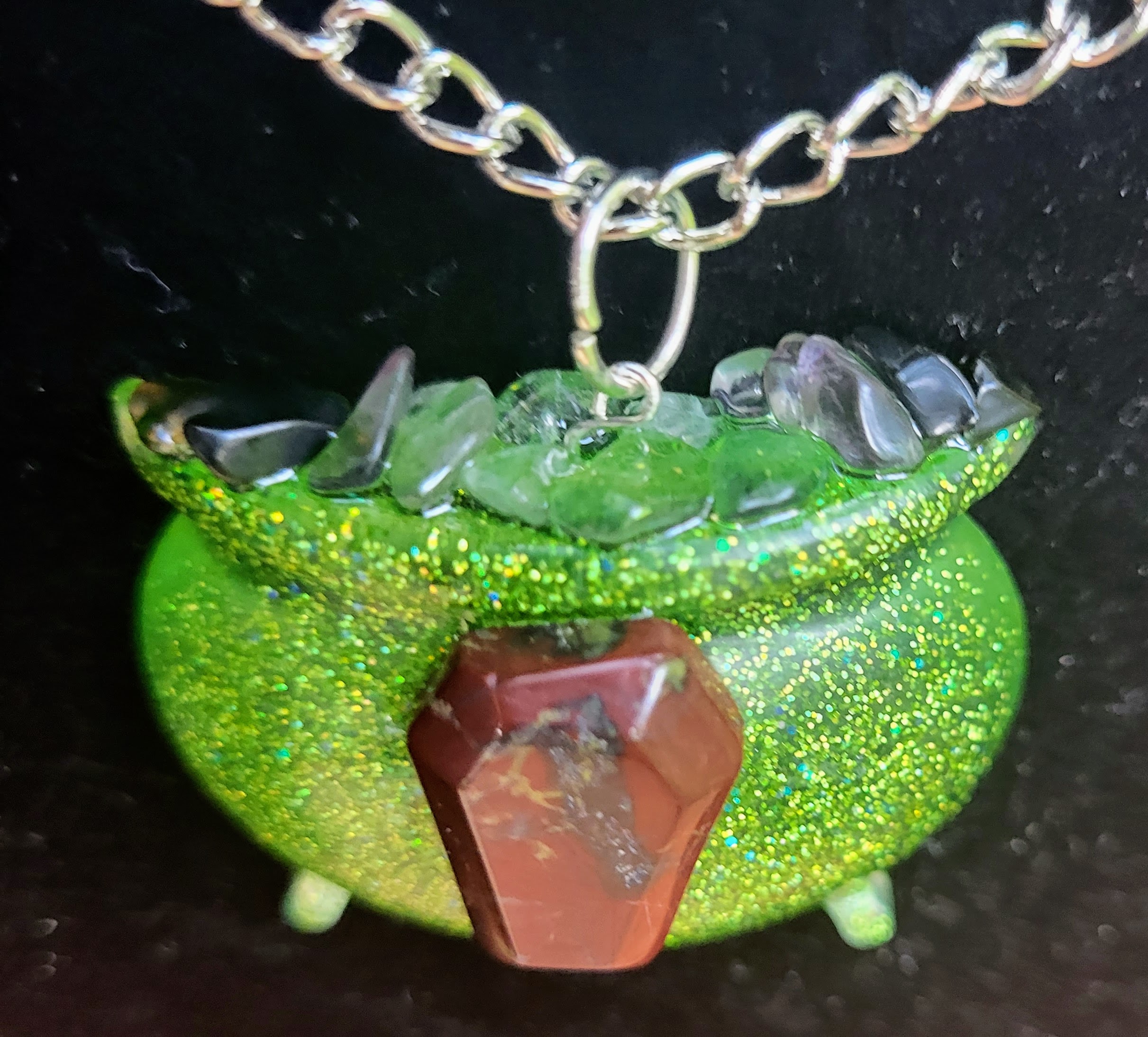 Explore our collection of unique resin crystal cauldron necklaces, perfect for the modern witch. These magical necklaces are handcrafted and available for sale. Discover your inner enchantress with these stunning accessories.